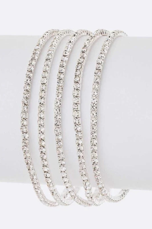 Elegant Crystal Stretch Bracelet Set - 5 Piece Collection for Effortless Style